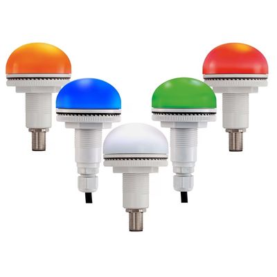 Model PM22L is a multifunctional panel mount LED that offers seven flash patterns, controllable via independent electric contacts. It is available in 12-24VAC/DC and two electrical connection options: M12 Cable Gland with 12" (300 mm) leads or M12 4-Pin Quick Connect (-Q). The PM22 Series is panel mounted through a 22 mm/0.87" hole and secured with the provided locking ring. It offers a self-extinguishing polycarbonate body that protects against vibrations, dust and other atmospheric elements.