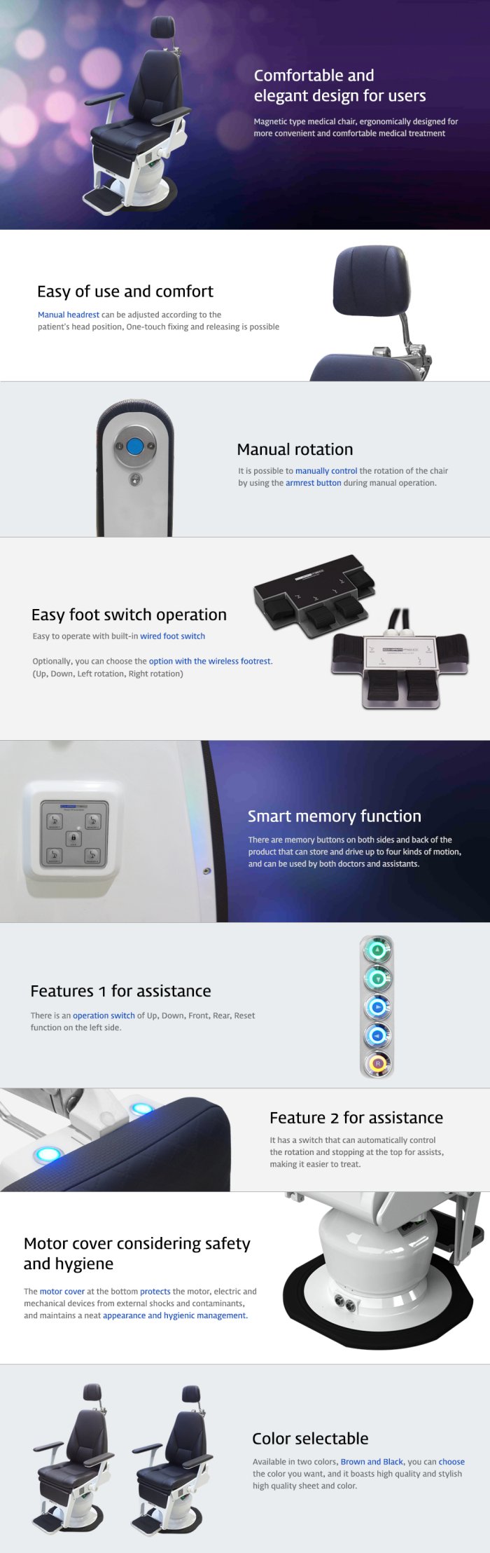 GX-5 is magnetic button type automatic patients chair. Magneic gives smooth rotatoin and movement.