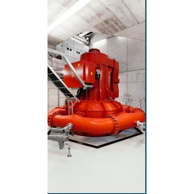 Pelton turbines are suitable for high heads of 80 to 1,000 metres and small volumes of water. An advantage of this type of turbine is that each nozzle can be controlled separately. This makes it easy to compensate for fluctuations in water flow.