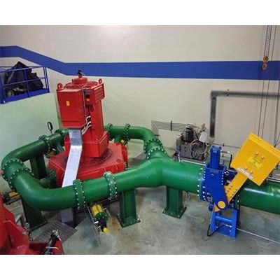 Pelton turbine is suitable for medium and high water head power plants. The key components are: Pelton runner, main shaft and Nozzle assembly. Advanced CFD, FEA technic is utilized in the designing process to ensure better technical solution. CFD analysis for Pelton turbine is performed in order to predict the turbine performance. The head loss in the collecting pipe and injector assembly is calculated based on CFD analysis results. The relation of needle stroke and flow also can be calculated. CFD analysis can improve injector and nozzle design to reduce head los. The flow curve relative to needle stroke can be drawn based on analytical data.