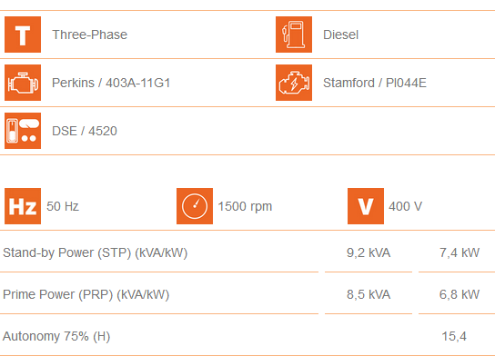 Diesel Generator set with Perkins engine model no. 403A-11G1 of 9kVA.