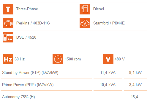 Diesel Generator set with Perkins engine model no. 403D-11G of 11kVA.