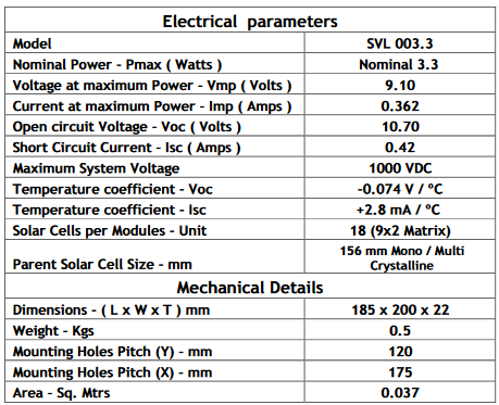Surana - Model SVL 003.3 -Photovoltaic Module