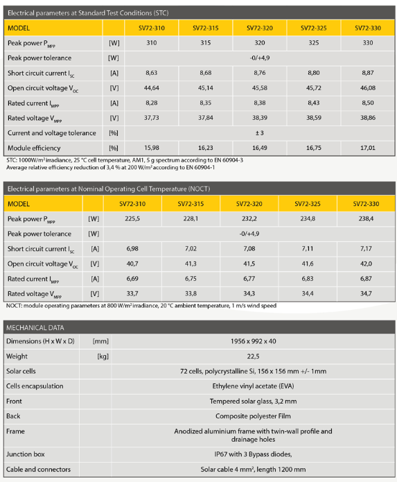Solvis - Model SV72 -Photovoltaic Polycrystalline Module