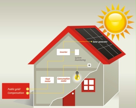 A generation and bidirectional meter shows the amount of electricity generated by a solar installation and how much is exported to the grid or used in the home. The electricity exported to the grid is paid according to an in-feed-tariff applicable in the country of use.