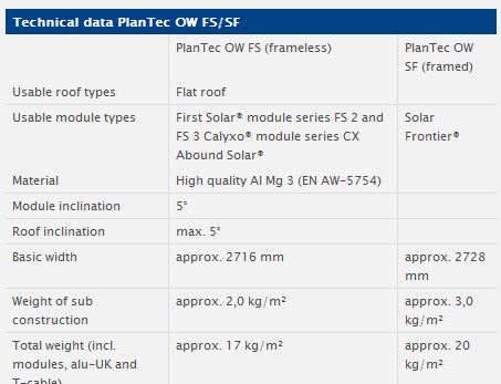 PlanTec - Model OW FS/SF -Flat Roof Solar System