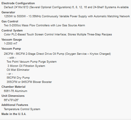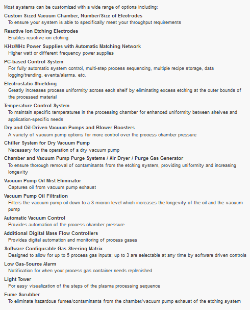 The MK-II is an excellent choice for use in industrial clean room settings as a plasma etching system.
