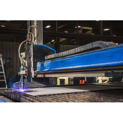 Plasma/oxy cutting tables can cut up to 4” thick plate in dimensions up to 10’ x 20’.