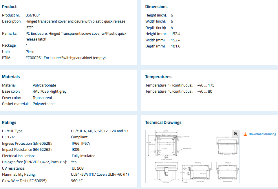 - Ratings:UL Type NEMA 4, 4X, 6, 6P, 12, 12K and 13: IP66; IP67;; IK09;
