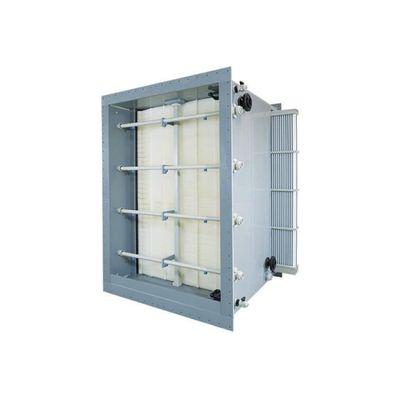 The product range is based on a modular design and can be used for gas volume flows of up to 150,000 Nm3/h. Optionally the heat exchanger can be equipped with a drop collector and, for use with polluted gases, also with a cleaning-in-place system. The gas-tight casing is welded from massive plastic plates and contains a condensate collector, reinforcing ribs and flanges.