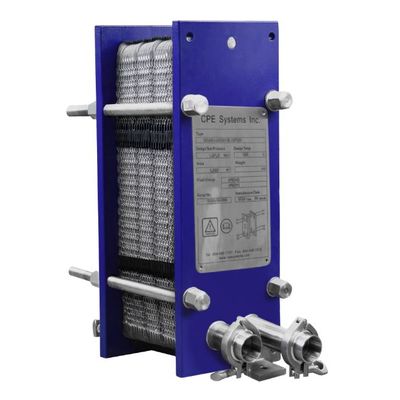 The CPE30D-XXD is a brewery heat exchanger for cooling wort from 200° F to 70° F using city water at around 50 F. This heat exchanger is designed so that the discharged water is hot enough to put into your HLT for your next brew. They are designed to cool a batch in approximately 30 minutes.