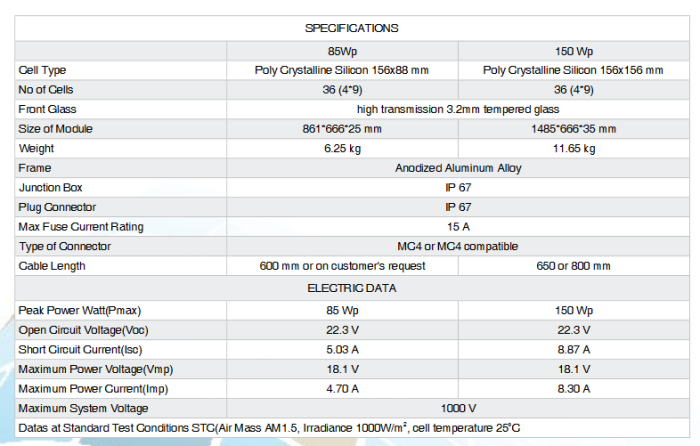 QS Solar - Model 85W-150W -Poly Crystalline PV Module