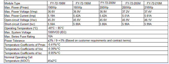 Feiya - Model 190-205W -Polycrtstalline Solar Panel