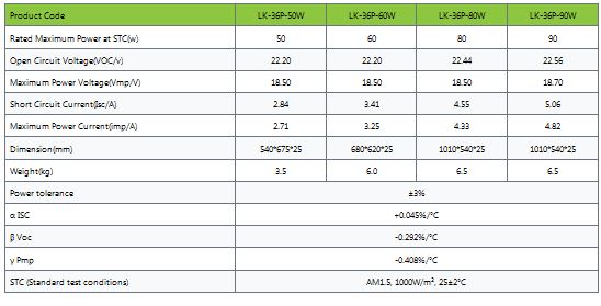 Leeka - Model 50-90W -Polycrystalline Solar Panel