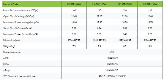 Leeka - Model 100-130W -Polycrystalline Solar Panel