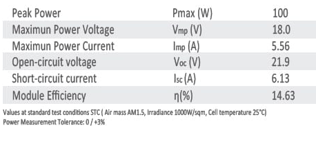 GMA Solar - Model GMA P6 36C 100W 12V -Polycrystalline Solar Panel
