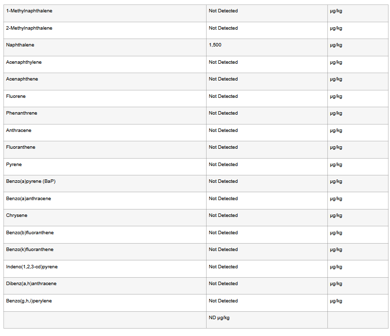 The following table shows the PAH analysis of the same sample whose properties are shown above: