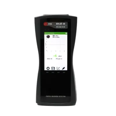 The HYJF-H Portable Handheld Partial Discharge Detector is a sophisticated tool engineered for detecting partial discharge in high-voltage electrical systems. Ideal for use with equipment such as high voltage switchgear, transformers, GIS, and overhead lines, this detector measures discharge intensity and frequency through various state-of-the-art sensors. It features TEV, AE, UHF, and HFCT measurement capabilities, providing resolution and precision of 1dB across a wide frequency range—making it suitable for diverse electrical environments. Integrated with a 4.0-inch RGB LCD screen, users can easily access discharge patterns, making it a reliable choice for maintenance and troubleshooting in complex setups. The unit is internally synchronized and offers the advantage of non-intrusive testing, eliminating the need for power-offs during assessment. Its robust design includes a durable ABS shell and a long-lasting lithium battery, ensuring functionality in various operational conditions without external power constraints.