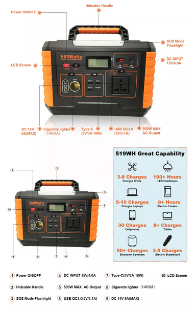 QiHua - Model QH Power X 500W -Portable Power Station