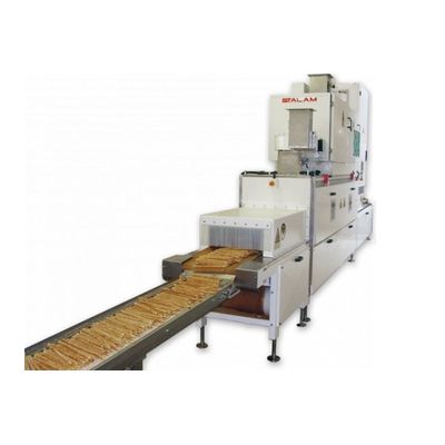 RF dryers have proven to be very effective when fitted after the baking ovens to control the product moisture content accurately and uniformly, with added benefits to productivity and quality. The radio frequency energy eliminates the excess moisture from the product rapidly and efficiently, without causing over-baking (excessive browning) of the surface.