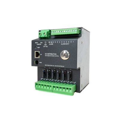 The DIN Series Power Distribution Unit from ICT is a DIN-rail mount, single-bus DC distribution module designed to be used in 12-, 24- or 48-volt DC applications.  It includes a secure, easy-to-use web-browser interface, which provides remote power monitoring, power control, and alarm reporting over an Ethernet link, along with SNMP support for integration into your network management system.