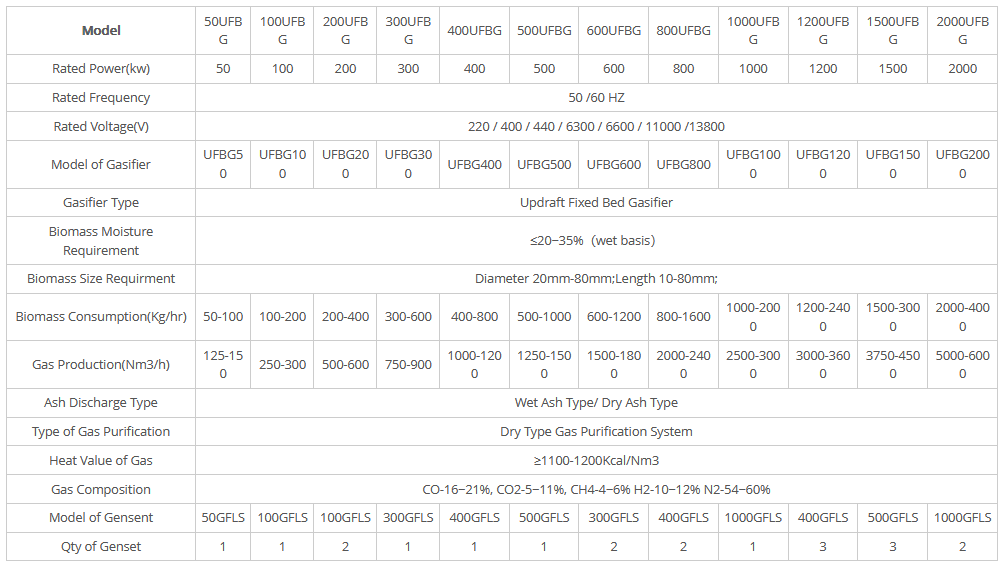 Biomass Storage, Biomass Conveyo, Biomass Gasifier, Cyclone Dust Collector, Air Cooler, Gas Cooler, ESP, Gas Cooler, Gas Dryer, Buffer Tank, Gas Flare, Gas Generator Sets, Blowe.