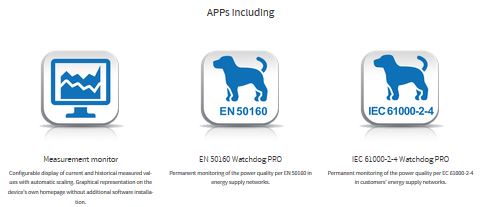 The web server for the measuring device provides a wide range of data in a user-friendly format. The user does not have to install any software on their PC; a conventional web browser is all that is required. The user enters the measuring device IP address in the browser`s URL bar and the measuring devices homepage is displayed on the screen. In addition to the modern homepage, APPs are available for an extended range of functions.