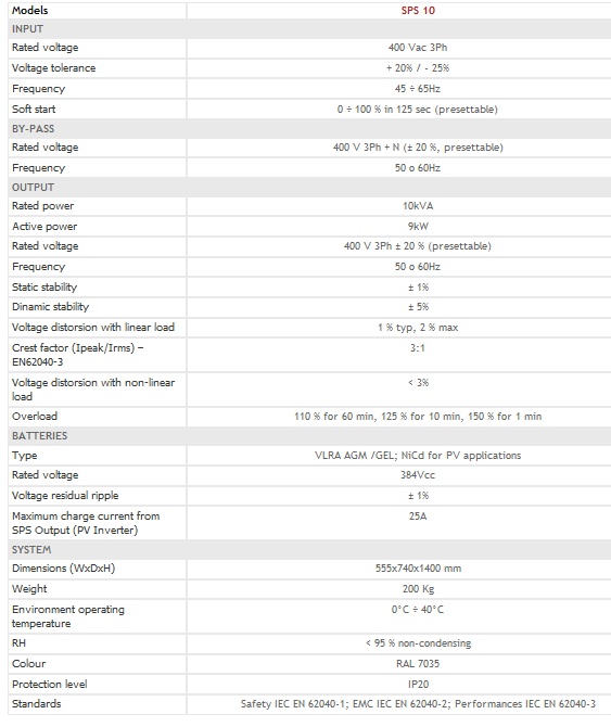 The generous dimensions of the main internal components allows a higher output value to be obtained and, to guarantee the system performance, the presence of the inverter’s output transformer ensures the galvanic separation between the load and the batteries.