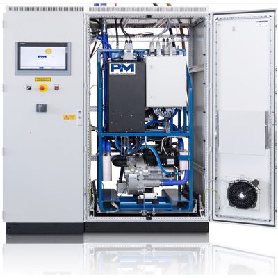 With the HyCabinet, Proton Motor offers more than a normal emergency power generator. The indoor/outdoor cabinet solution is available in several sizes and can also be individually adapted to specific customer requirements in a variety of performance classes. Depending on the application, the heart of the system is one or more fuel cell modules from Proton Motor.