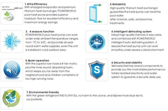 - long operating life: using the advanced Titanium heat exchanger, which resists the erosion from chlorine in the water, creates a longer life span.