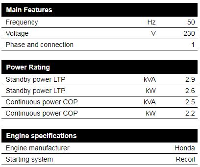A petrol generator designed specifically for intensive operations where performance power is demanded by professional user, over an extended period of time.