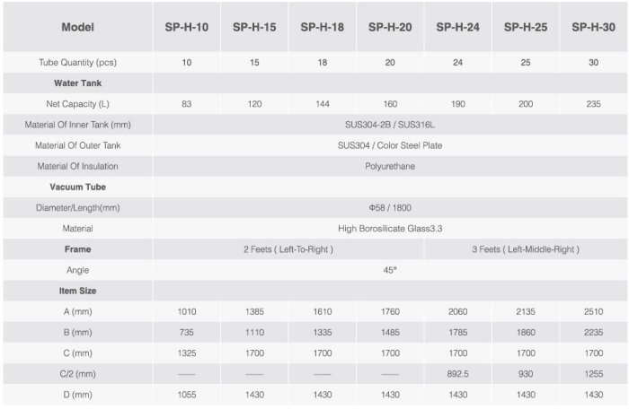 Sidite - Model SP-H -Pressurized Solar Water Heater