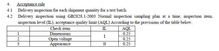 Initial test – 3.10V-3.45V |After 12 months 3.00V-3.45V