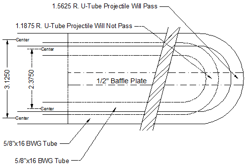 Listed below is a diagram that shows the minimum radius that the 5/8” and ¾” U-Tube Projectiles will not pass: