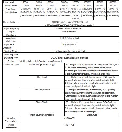 This is a 300W 12V pure sine wave power inverter which can generate 300W of continuous power and up to 600W of power at peak times (peak time reserve capacity is useful if more energy is required to start an appliance than for its continuous running).