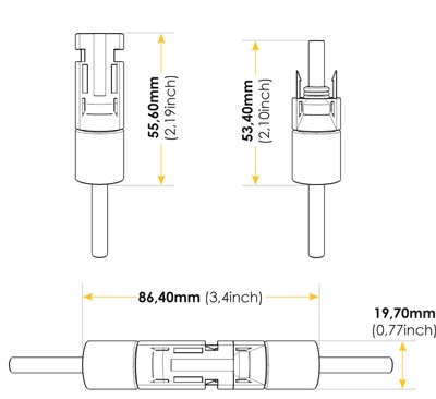 Gold plated. As a couple or as a single plug. The precision and use of high quality components allowed Galaxy Energy a manufacturing of an extremely high quality connectors with gold-plated contacts. Therefore Galaxy Energy offers a product warranty of 5 years. In conjunction with our Highperformance modules and related performance guarantee of 25 Years. This is necessary to provide a safe investment over Decades.