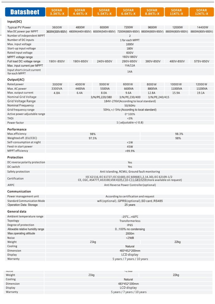 - Sofar - Model 6.6KTL-X - PV Grid-Tied ...