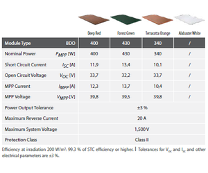 - Also available as a BIPV solution used in roofintegrated applications