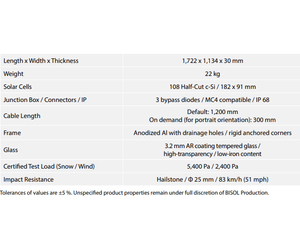 BISOL Group is proud to emphasise that its Supreme™ series of PV modules was the first and unique solar product in the world that offered 100% Guarantee on Output Power. When compared to the best-in-class solar panels with the linear output power guarantee currently available on the market, BISOL Supreme™ shows off with at least an 11% higher energy yield in the guarantee period. Together with 0% effective degradation and exceptional efficiency, the series also sets global trends in the field of complete traceability of the production process of every individual product. As the industry trendsetter, the Supreme™ series allows for complete relaxation and enjoyment in the comfort of pure luxury, where you never worry about the performance of your decision. BISOL Supreme™ products are derived to perfection! It is all about bringing value to the market, always putting customers first. The guarantee and performance of the Supreme series boost the power plant profitability to the extremes.- Monocrystalline Solar Cells