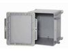 The cover/box seal shall be dual-molded so as to be a permanent part of the cover and the cover secured to the box using non-metallic quarter-turn “close by hand, tool assist to open” fasteners. To aid in the alignment and proper positioning of conduit connections the box/enclosure shall have embossed gridlines on the sidewalls. The mounting feet shall be a permanent molded feature of the box and not extend beyond the periphery of the box/enclosure. On boxes/enclosures of nominal size 8"x8" and larger, back-panel / DIN rail mounting and pad-lock provisions shall be incorporated into the product.