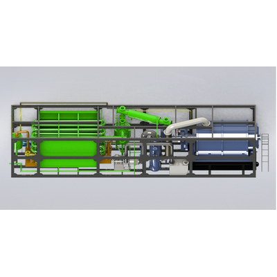 The configuration of main systems of Model F series pyrolysis plant. All parts pre-assembed in frame structure while delivered. It can start running with water&electricity supplied and few pipelines reconnected. All installation related costs are saved.