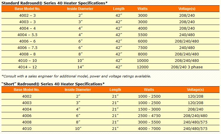 Radround - Model 40 Series -Quartz Cylindrical Electric Infrared Heaters