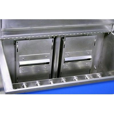 Matching Hot Air Knife Blow-Off Dryers are made for all standard model RAMCO Parts Washers in the MK and CM Series as well as custom sizes. The top photo is a small dryer made for an 28″W x 15″L x 10″H basket with a maximum weight load capacity of 150 pounds. The bottom photo is a large custom dryer made for a 40″L x 30″W x 36″H basket with a maximum weight of 1000 pounds. Big or small, RAMCO Dryers are known for getting results in challenging applications.
