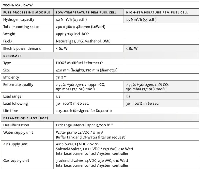 The FLOX® Reformer product line comprises not only unique technical features but also WS Reformer’s broad competence in manufacturing, duration tests and thousands of hours operational time in PEM fuel cell systems. We are dedicated to excellent customer support by sharing this experience during project planning, training and after-sales service. The fpm C1 fuel processing module is designed for micro-CHP systems in residential applications. Special emphasize is put on compact size, low weight and design-for-manufacturing in order to meet the challenging cost targets at mass manufacturing. CO-removal by single CO-shift and integrated selective methanation are the unique features of FLOX® steam reformers, which make operation as robust and simple as possible.