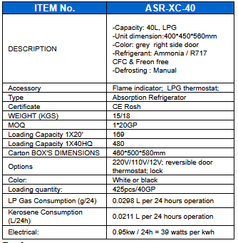 Atlantis Solar - Model ASR-XC-40 -Refrigerator