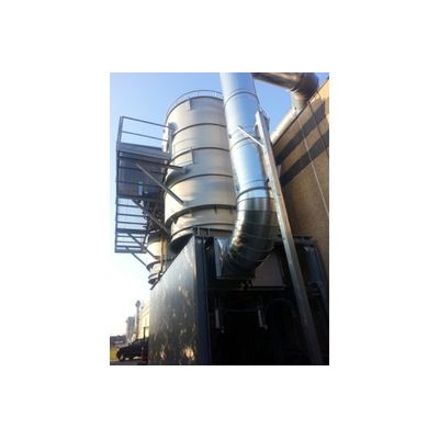 The system is generally composed of three towers with ceramic filling, which alternately operate as a pre-heating chamber, filling cleaning chamber, and thermal recovery chamber. They are physically connected to the upper part by a combustion chamber with one or more modulating burners. The chamber, entirely covered in ceramic fibre insulating panels, ensures the optimal combustion temperature, generally between 750 - 850° C, and its sized is designed to hold treated air for 1 second circa.