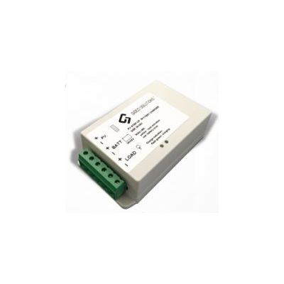 MPPT step-up recharge. Large tension range on panel entrance Vp = 2.0V –Vbatt. Battery tension 36V / 48V with dipswitch sortable. For Pb and Lithium ions batteries with dipswitch sortable. Temperature compensated Charge voltage. Over temperature protection. Protection for battery polarity inversion. IP20 plastic case (ABS). Load terminal can be programmed for lighting systems