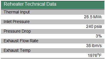 The Clean Energy Systems reheat combustor, or reheater, dramatically improves the efficiency of combined steam and gas turbine power cycles by boosting the drive gas to turbine inlet temperatures typically associated with gas turbines and even beyond. The principles behind the reheater are essentially the same as applied in the CES drive gas generator but exchanging water with steam as coolant.