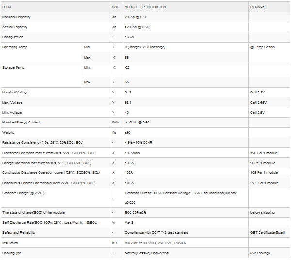 - Built in 3.2v 100Ah LiFePo4 cells 16S2P