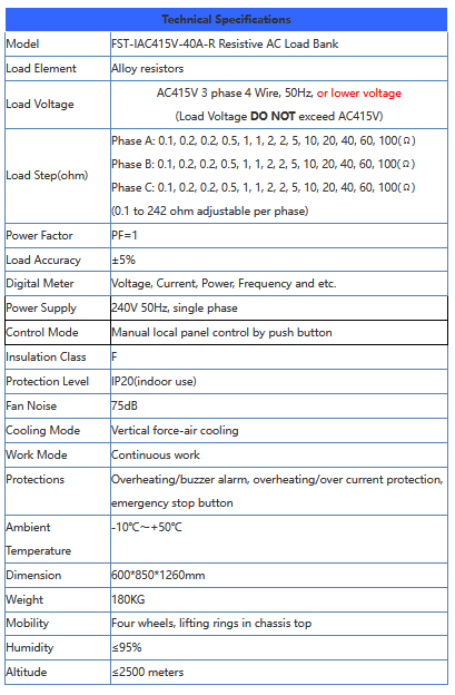 Foresight - Model FST-IAC415V-40A-R -Resistive AC Load Bank
